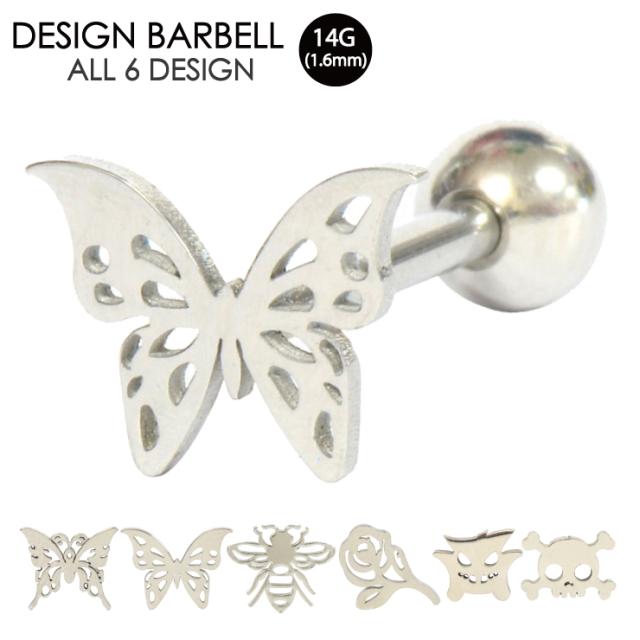 【メール便対応】デザインバーベル 6デザイン 14GA(1.6mm) シャフト12.14.16mm ボール5mm ステンレス 個性的 スタイリッシュ 耳 モチーフ【Butterfly Honeybee Little-devi Sukll Rose】ボディピアス┃