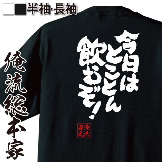 おもしろtシャツ 俺流総本家 魂心Tシャツ 【今日はとことん飲むぞ!】飲み会 宴会 生 ビール 焼酎 日本酒 カクテル 酎ハイ ワイン 酒 おもしろ雑貨 漢字 文字Tシャツ おもしろ プレゼント 面白 メッセージtシャツ 文字tシャツ 長袖 大きいサイズ