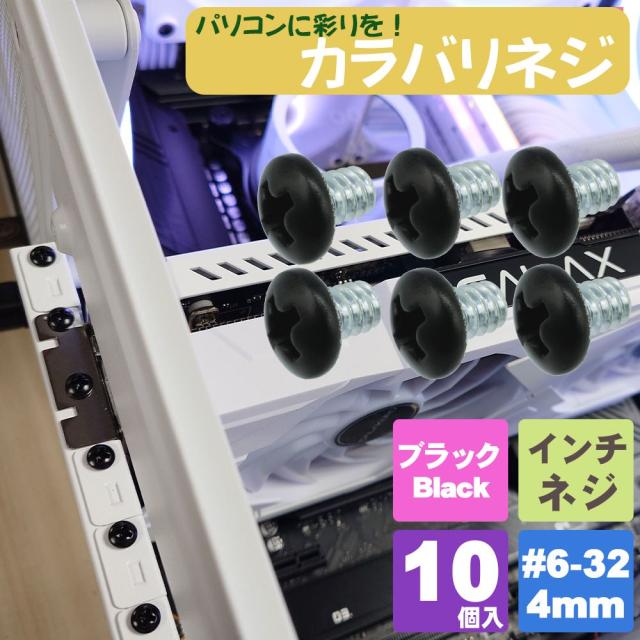 カラーネジ インチタイプ ブラック(黒) #6-32 ネジ長約4mm マザーボード ドライブ PCケース 固定 10個入 SN-020BK エスエスエー