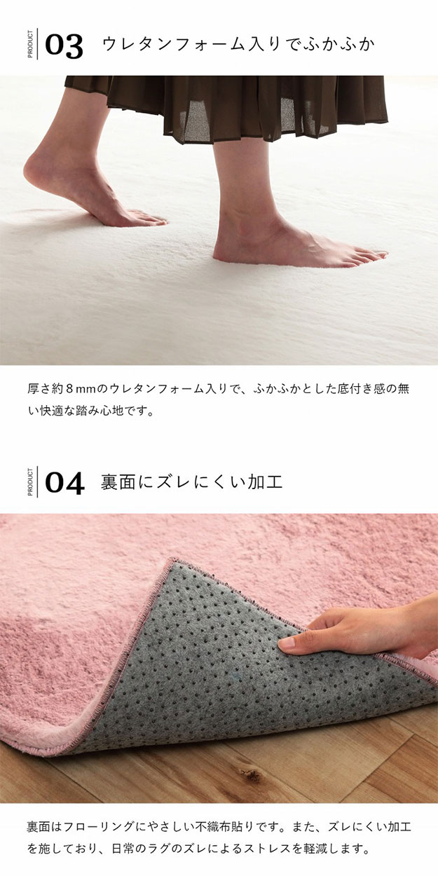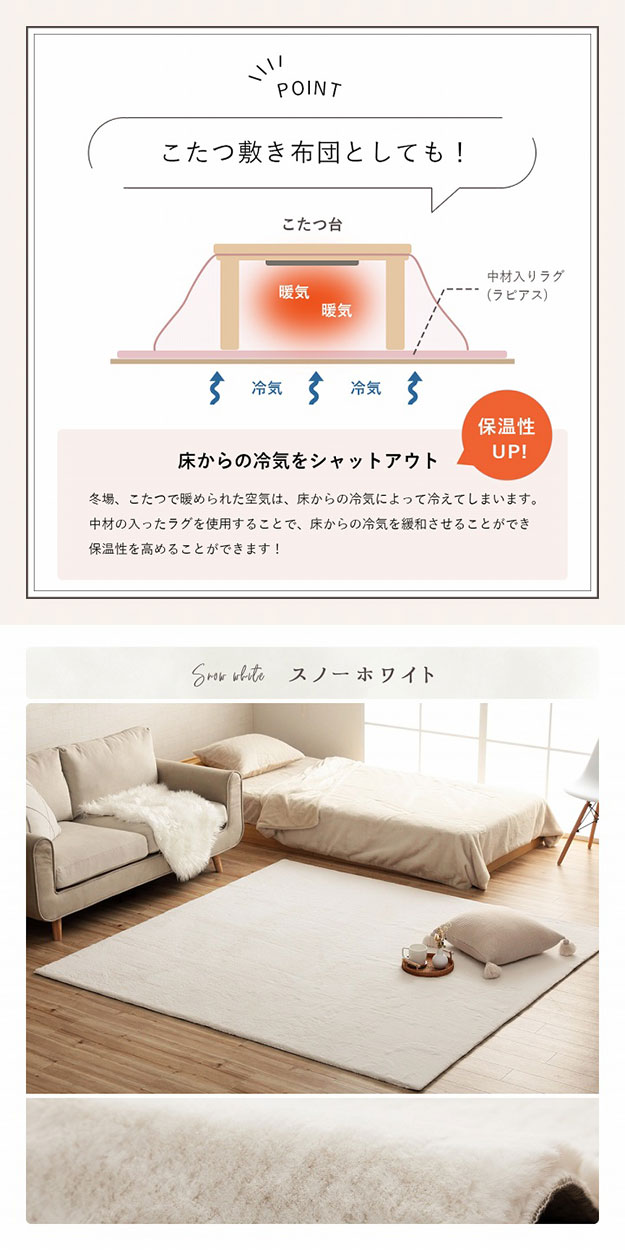 カーペット かわいい ふわふわラグ ラピアス 140x200cm シャビーシック ホットカーペット対応 床暖房対応 マイヤー織り フェイクファー 抗菌 防臭 洗える 寝室