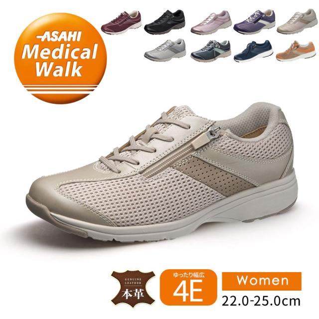 アサヒメディカルウォーク ウォーキングシューズ レディース 4E 歩きやすい スニーカー メッシュ ファスナー メッシュ 母の日 敬老の日 プレゼント 黒 ブラック ワインレッド 赤 ベージュ パープル ネイビー 水色 ミントグリーン MS-L