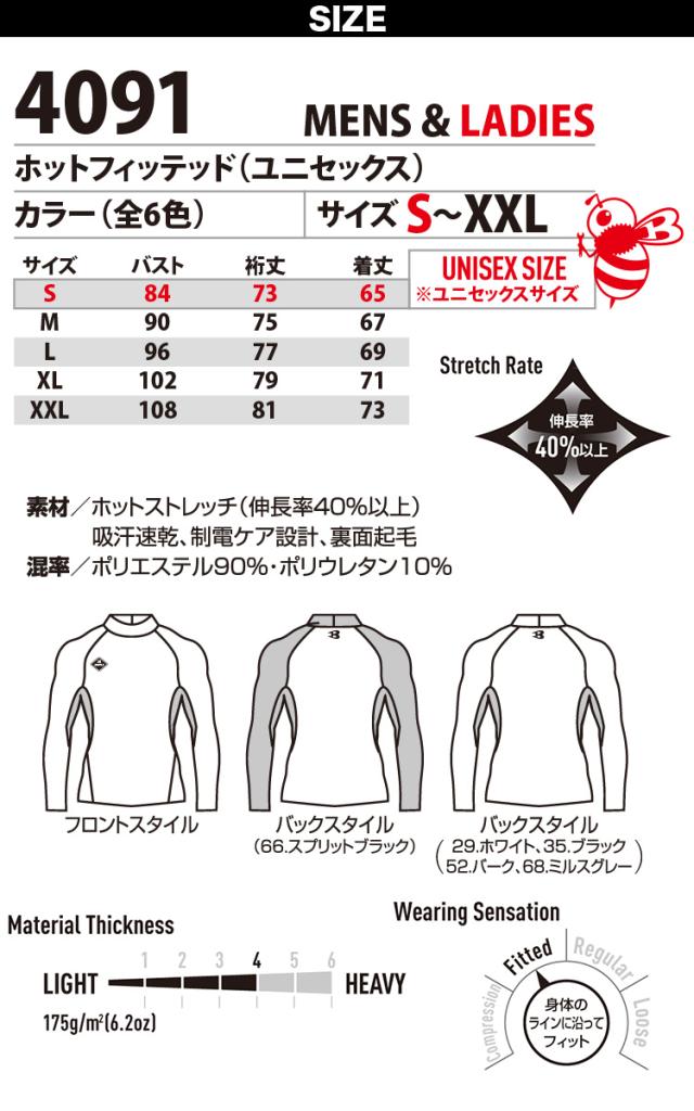 バートル ホットフィッテッド (ユニセックス) 4091 S〜XXL 秋冬 ストレッチ 吸汗速乾 消臭 制電ケア 快適フィット アンダーウェア コンプレッション インナー 作業服 作業着 BURTLE