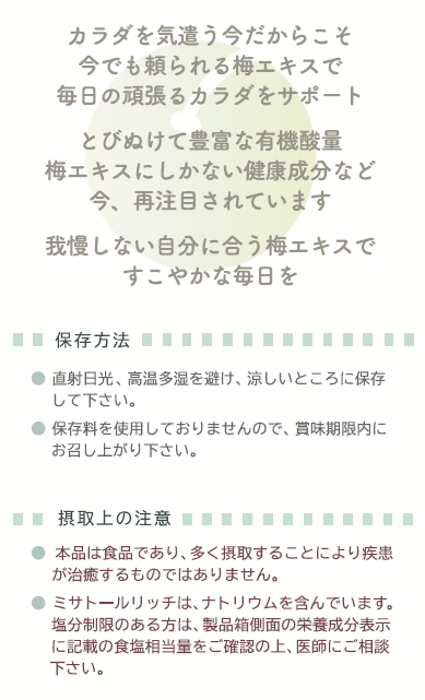 「ミサトールリッチ」は、梅特有の酸味を抑えるており、酸っぱいのが苦手な方にも