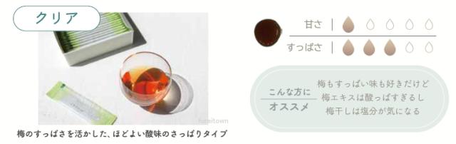 飲みやすく甘味をプラスした、高濃度タイプの梅エキス飲料です。