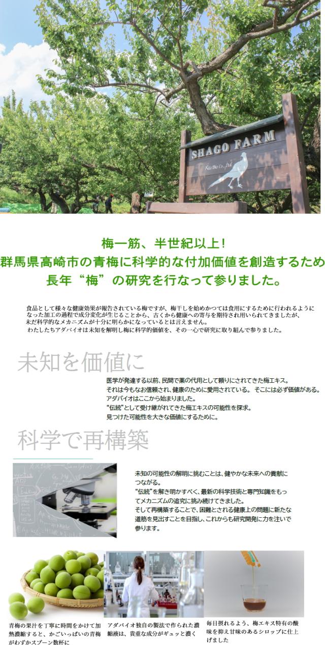 半世紀以上の研究で見つけた成分をぎゅっと濃いシロップ 梅が大好き アダバイオ社長梅愛がすごい