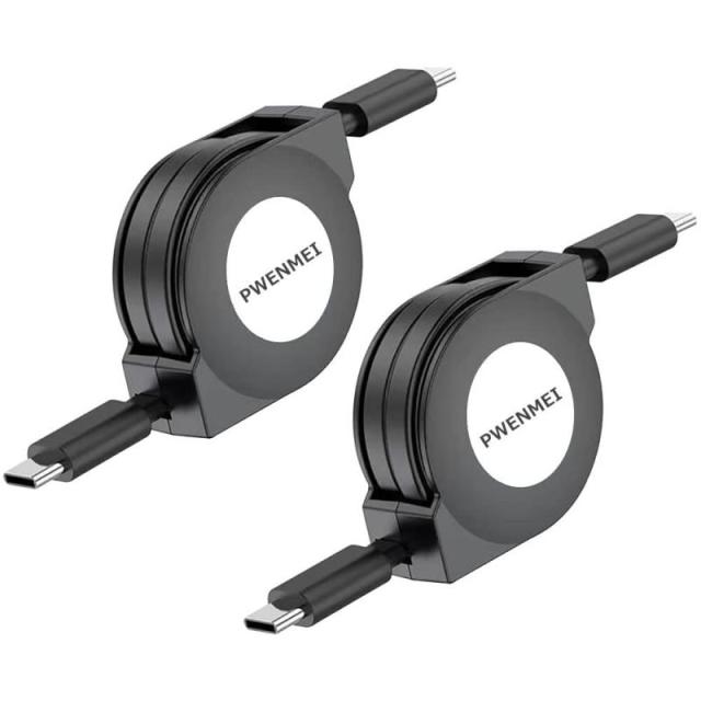 PWENMEI Type C to Type C ケーブル 巻き取り PD対応【1m 2本】タイプc ケーブル 急速充電 USB C to C ケーブル 巻取り式 超高耐久 I-Phone15/15 pro/15plus/15pro max Huawei