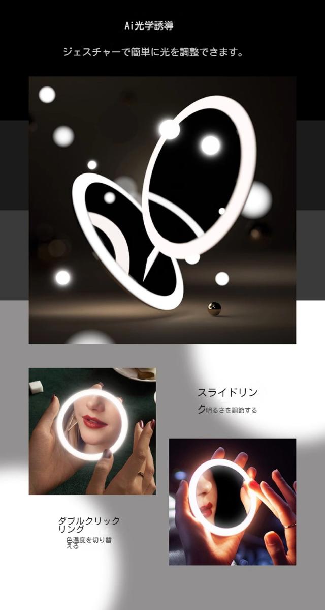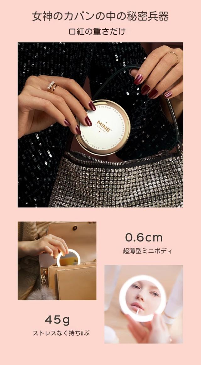 MINE高輝度LED 卓上ミラー LEDミラー ライト付きミラー メイクアップ スタンドミラー 充電式 横顔チェック メイクミラー クリスマス 母の日 プレゼントガールフレンドを送る手持ちの外出用スマートミラー