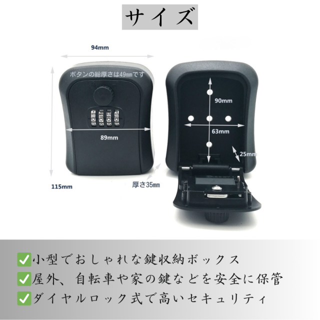 キーボックス ダイヤルロック式 南京錠 鍵 カギ 自転車 壁掛け 防犯 新品 屋外 ダイヤル式 おしゃれ 小型 介護 子供 共有 簡単 対応 収納ボックス セキュリティボックス 鍵収納 盗難防止 侵入対策 防犯 鍵収納ボックス 最新版 カギ管理 カギ収納