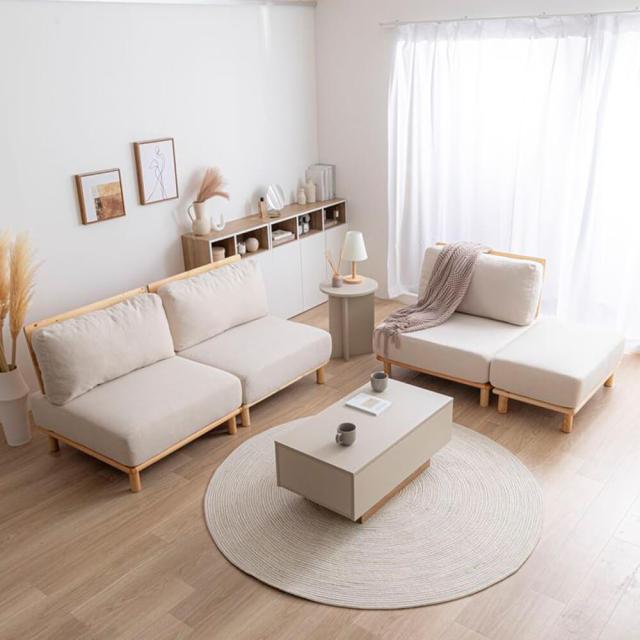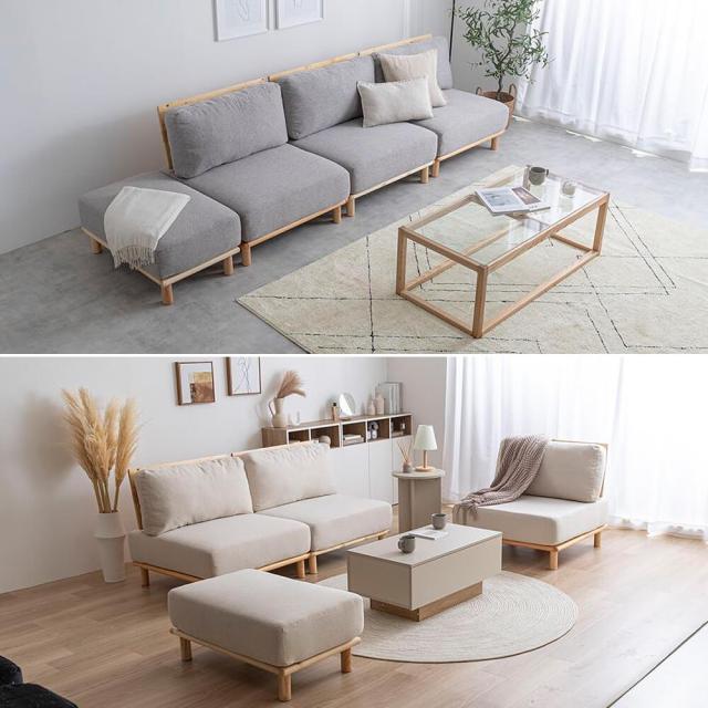 オットマンを組み合わせることで、さらに広いスペースを活用できます。アームレスのデザインにより、ソファ全体の圧迫感が軽減され、お部屋をすっきり広く見せることが可能です。