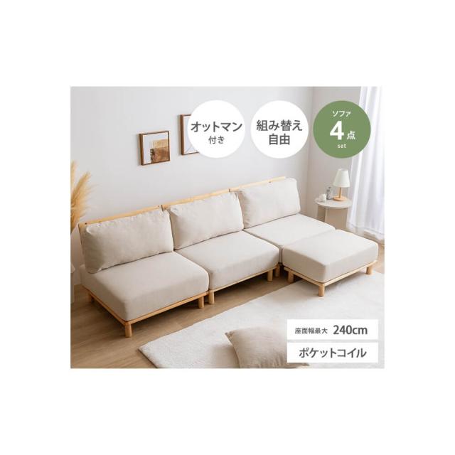 こちらの商品は、3人掛け+オットマンの4点セットの商品ページとなります。