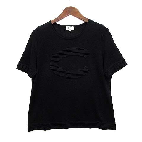 【中古】カルヴェン CARVEN Cロゴ 刺繍 サマーニット セーター 半袖 シルク混 ブラック 黒 44 大きいサイズ レディース