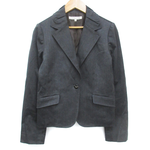 【中古】グリーンレーベルリラクシング テーラードジャケット ミドル丈 ヘリンボーン 40 チャコールグレー レディース