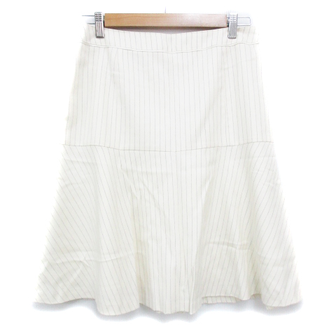 【中古】ジェイプレス フレアスカート ひざ丈 ウール ストライプ柄 大きいサイズ 15 白 黒 ホワイト レディース