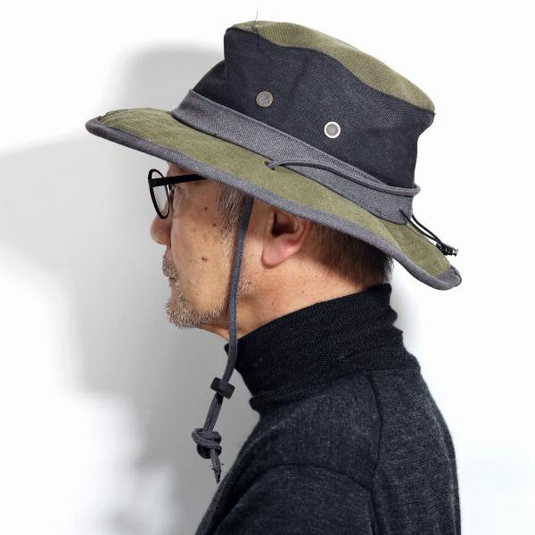 ゴワっとしたタフなキャンバス生地を採用しアゴ紐を装備したアウトドア色の強いハットです。普段使いで合わせて楽しんでいただくことはもちろんですが、丈夫なボディはリアルアウトドアシーンで大活躍でしょう。グレーとオリーブカラーからなる風合いのある渋い配色にも注目してほしい。アウトドアやミリタリーを彷彿とさせるルックスは男心をくすぐる仕様だ。さらにアゴ紐付きなので強風にも対応できる。