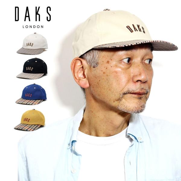 DAKS 父の日 ギフト ダックス キャップ チェック柄 帽子 ツイル 縮小タータン ロゴキャップ ブランド バイカラー キャップ Mサイズ Lサイズ LLサイズ 日本製 [ cap ] 50代 60代 70代 ファッション メンズコーデ 小物 メール便無料 送料無料 ラッピング無料