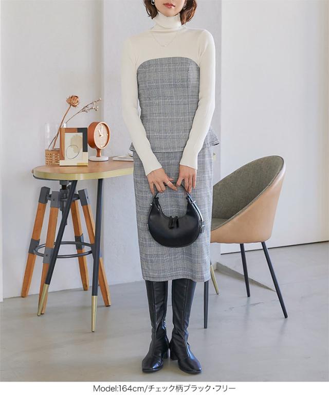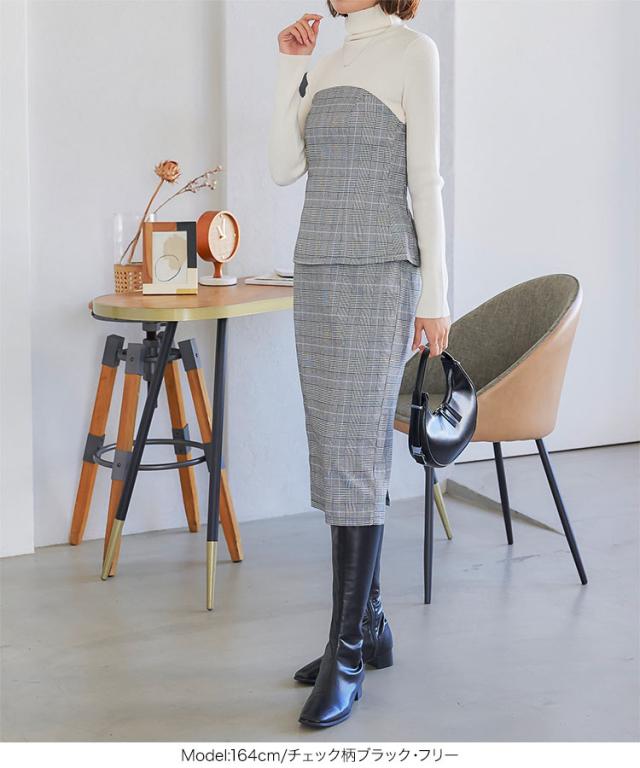春新作 チェック柄ナロースカート M3964 入荷済 レディース 30代 40代 セットアップ チェック ナロースカート タイトスカート スーツ ウエストゴム
