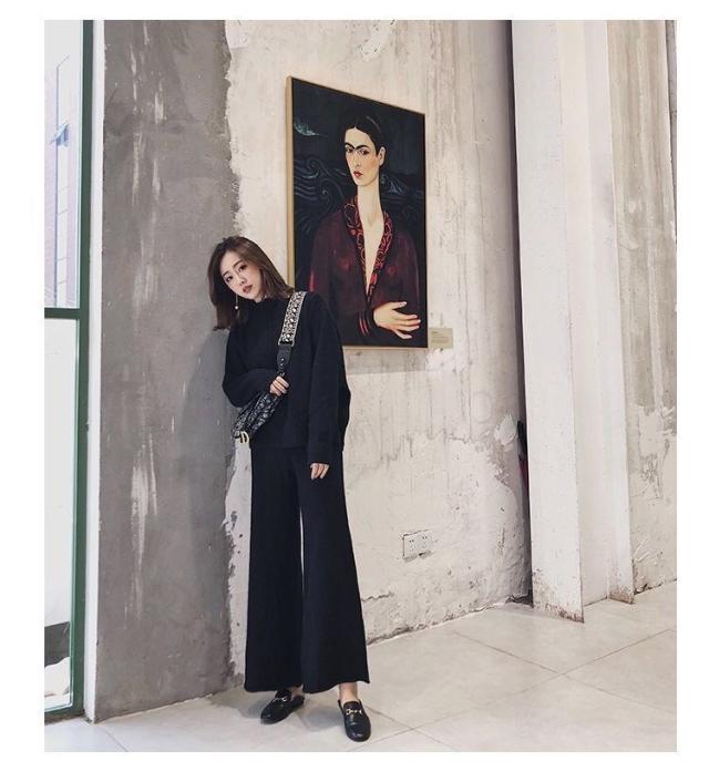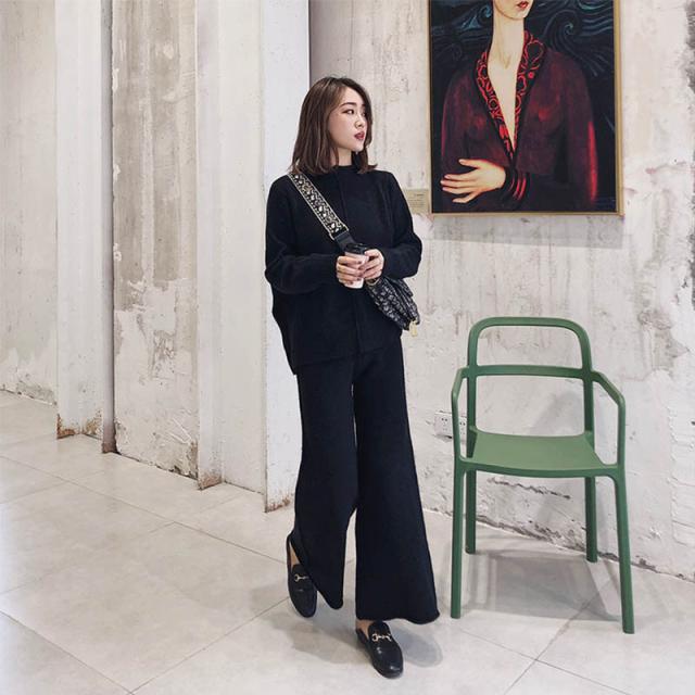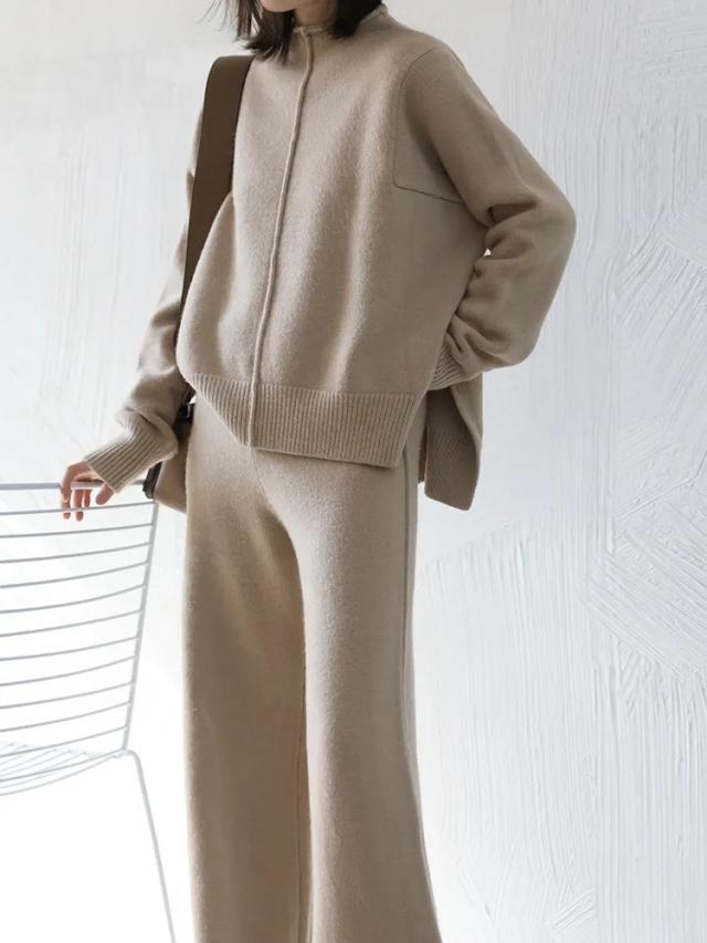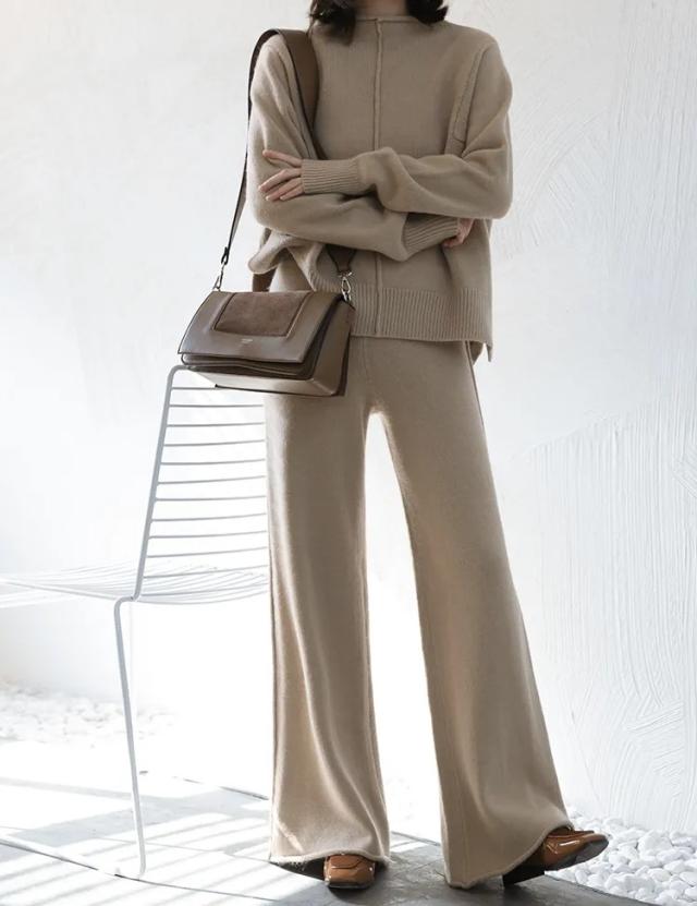 パンツセットアップ レディース リブニットセットアップ セットアップ ニット 2点セット 秋 冬 上下セット ニットパンツ ニットセーター ガウチョパンツ ワイドパンツ 無地 ゆったり
