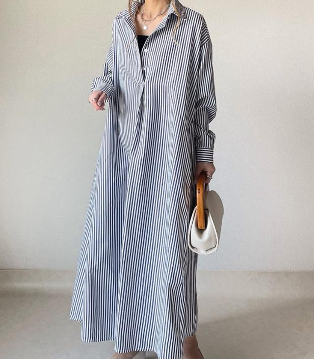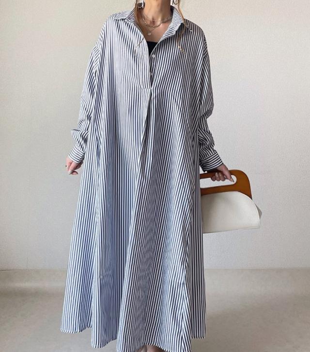 シャツワンピース シャツ ワンピース レディース ロングワンピース 長袖 前開き 体型カバー きれいめ ゆったり 秋