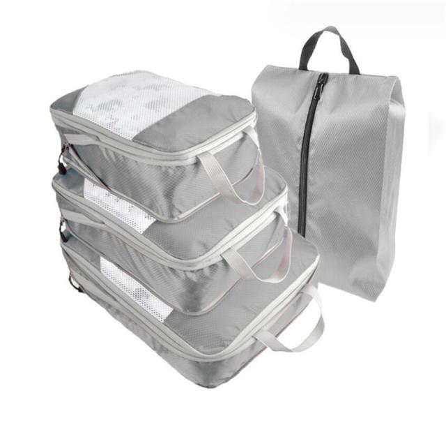 トラベルポーチ 圧縮バッグ 4点セット 旅行 トラベル 旅行用圧縮袋 ファスナー 収納ポーチ 衣類 旅行ポーチ 軽量 出張 バッグ