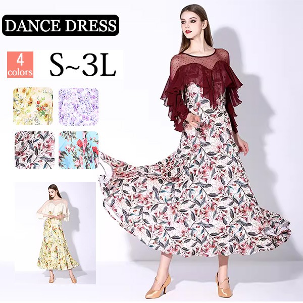 社交ダンス 衣装 モダンドレス 花柄 ラテン衣装 ロングドレス ダンスウエア 大きい裾 競技着 練習服 ワルツ タンゴ服 インターナショナルダンス モダンダンス ワンピース スタンダードドレス ダンスドレス イベント演出用s m l 2l 3l dm086l9l9zr