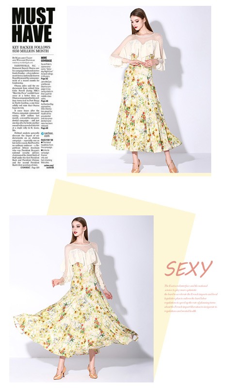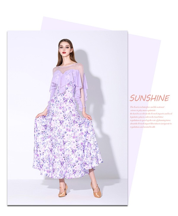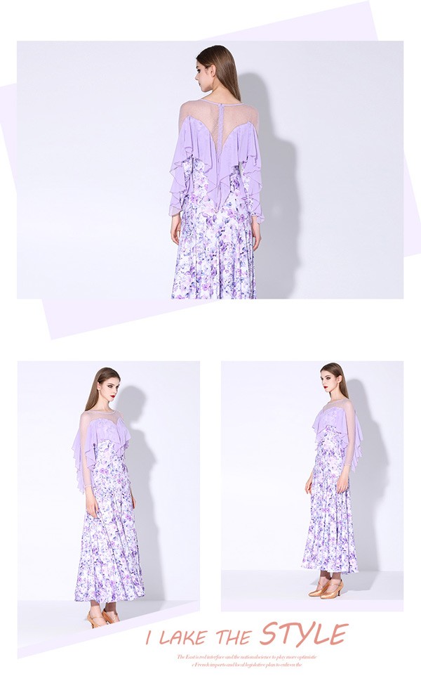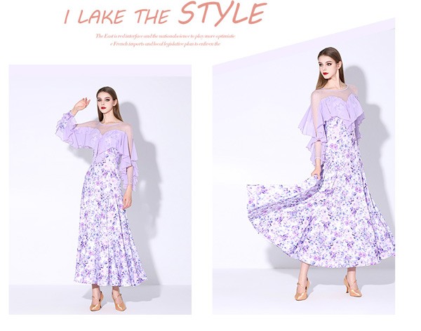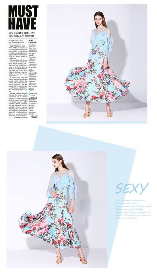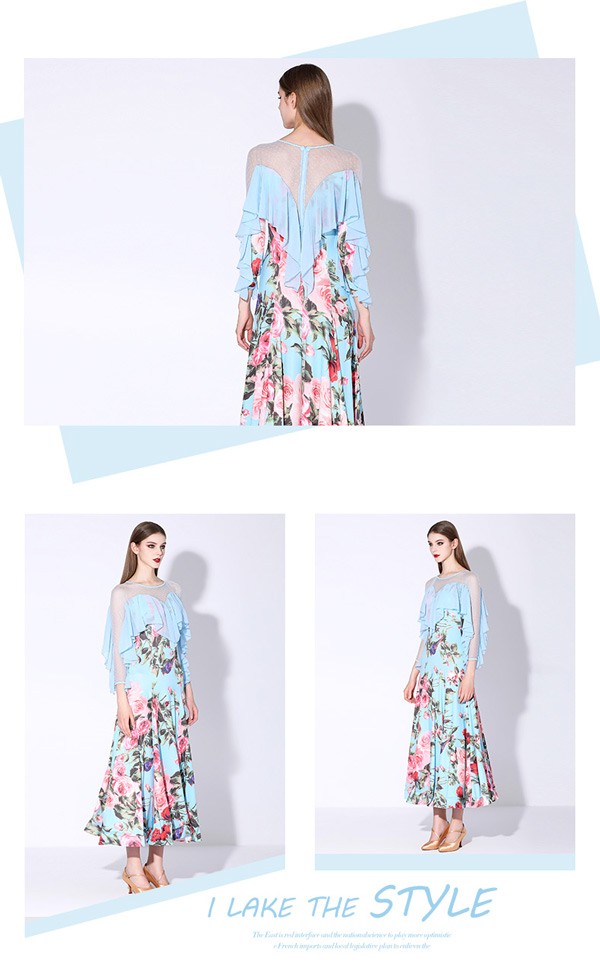 社交ダンス 衣装 モダンドレス 花柄 ラテン衣装 ロングドレス ダンスウエア 大きい裾 競技着 練習服 ワルツ タンゴ服 インターナショナルダンス モダンダンス ワンピース スタンダードドレス ダンスドレス イベント演出用