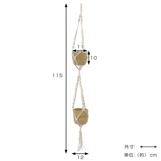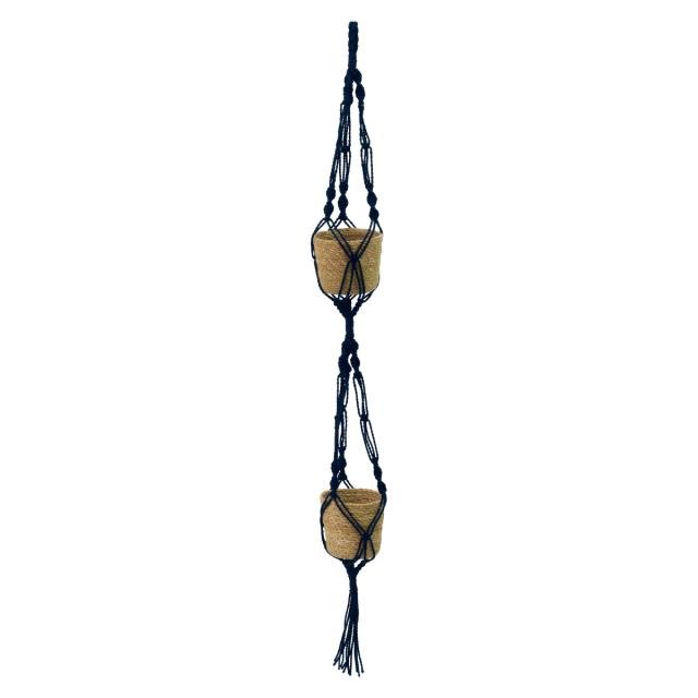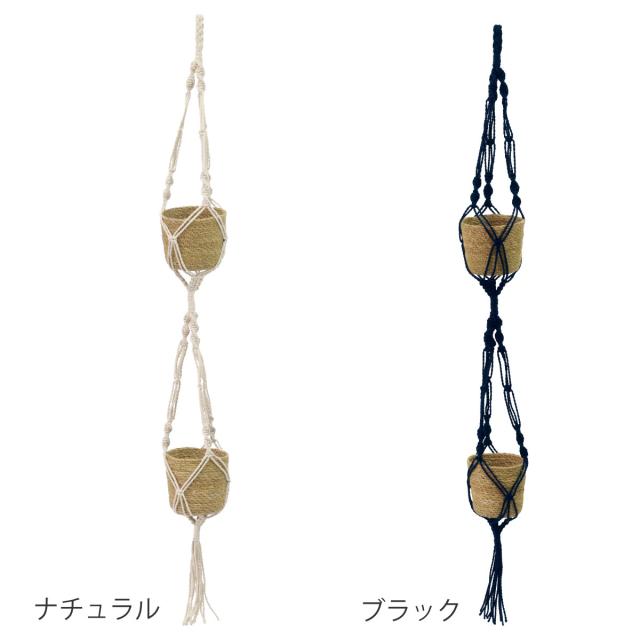 植木鉢 マクラメ ハンギングポット2連 直径9cm ( かご カゴ マクラメ編み 手編み プラントハンガー ポット 鉢ポット 植木鉢カバー つり下げかご 吊り下げ つりさげ カバー ハンギングプランター 9cm 3号サイズ 3号 2連 2段 )