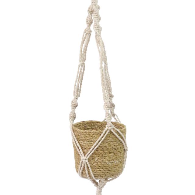 コットンロープを伝統的なマクラメ編みで編み上げたハンギングロープは、平編みやねじり結びなど、主張しすぎないシンプルなデザインに仕上げました。ハンドメイドの温かみのある優しい雰囲気は、どんなインテリアにもおしゃれに馴染みます。
