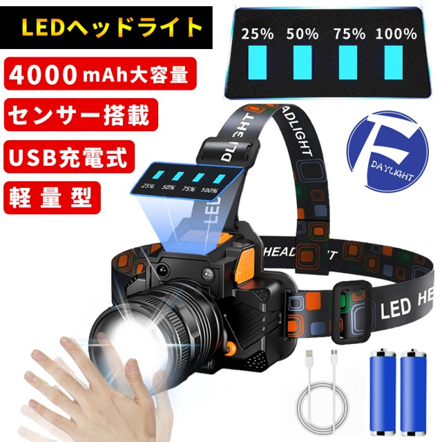 ヘッドライト LEDライト 【最新進化版】センサー機能 高輝度 3モード USB充電式 防水 電池残量表示 防災用 アウトドア キャンプ 登山