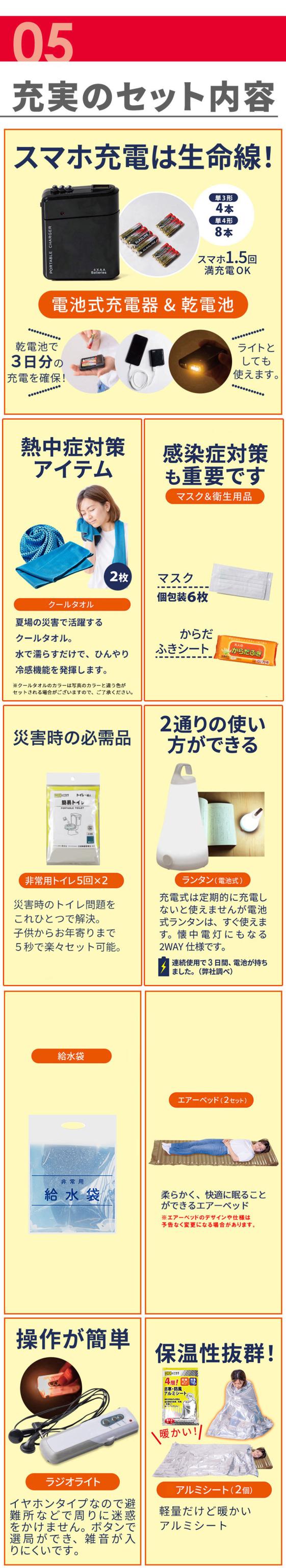 - 値段は相場と比べて安いかどうかわかりませんが 地震に備えて自分で準備するより安心です。 スペースが少し余るので 他必要な物も入りそうです。 ただ届くのが2ヶ月くらいかかるので 必要な方は早めに注文し...
