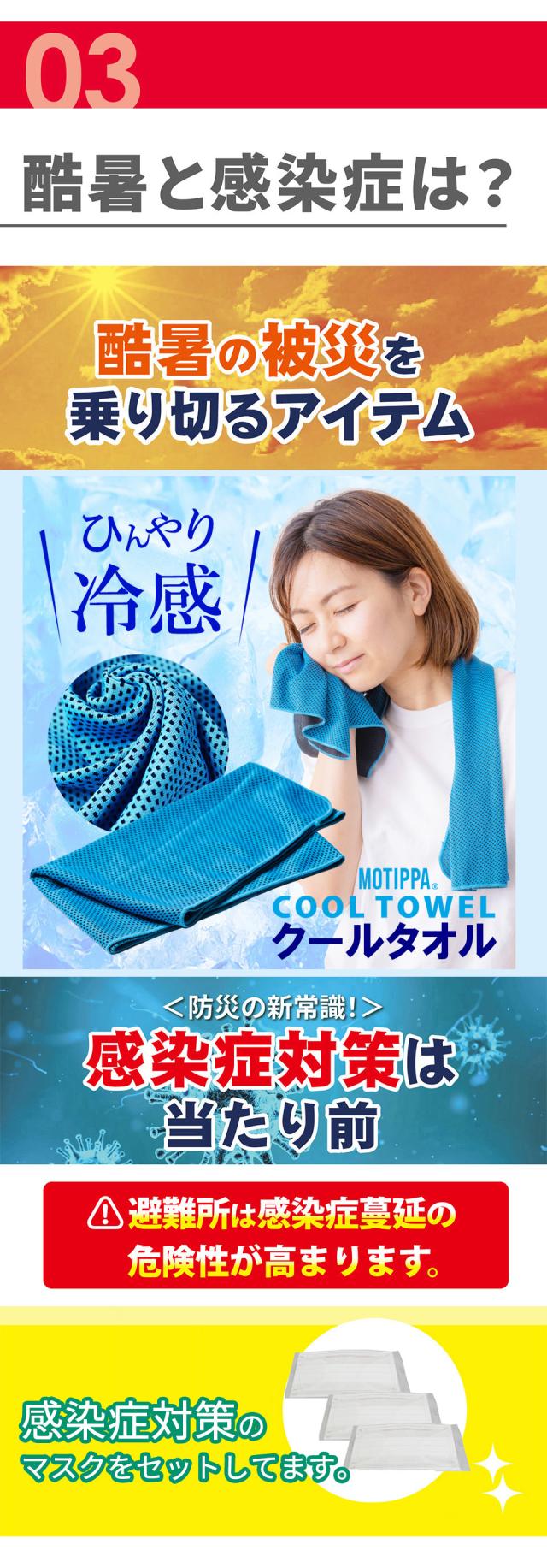 | クールタオル×2 | 水で濡らせばひんやりと冷感 真夏の災害時の熱中症対策として |