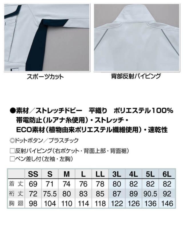 AITOZ アイトス 長袖シャツ AZ-1935 エコ素材 軽量 ストレッチ 帯電防止 春夏 作業服 男女兼用 サイズSS〜LL