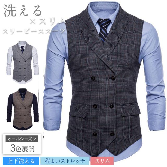 ベスト メンズ スーツベスト スリムベスト テーラードベスト チェック柄 事務服 冠婚葬祭 ジレベスト 卒業式 二次会 入学式 紳士服 結婚式