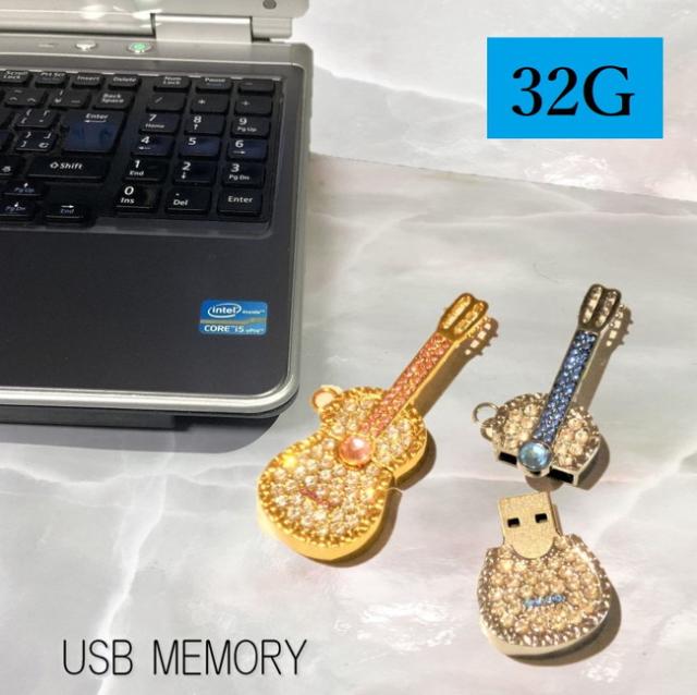バイオリン USBメモリ 32G キラキラ ストーン 可愛い おしゃれ プレゼント USB 写真 画像 動画 保存 pc パソコン メモリーカード ネックレス キーホルダー