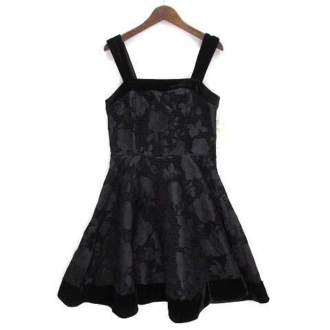 【中古】未使用品 プレイスポーズ PLACE PAUSE ジャガード ローズ柄 ベロア ワンピース ノースリーブ レースアップ ブラック 黒 M