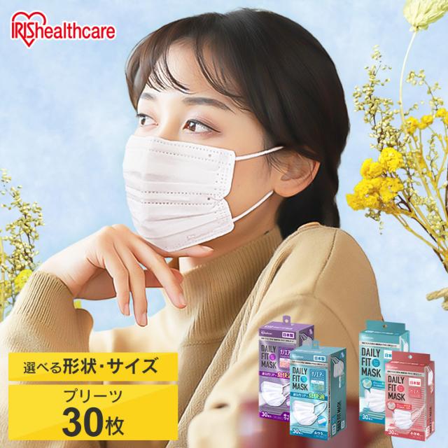 マスク 不織布 アイリスオーヤマ 不織布マスク 日本製 ふつう 小さめ 大きめ ゆったり大きめ きれい プリーツ 白 30枚 デイリーフィットマスク ナノエアーマスク DAILY FIT MASK