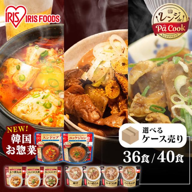 【36/40食セット】そうざい 惣菜 レンジ調理 簡単 レンチン レンジでチン電子レンジ レトルト パウチ レトルト食品 保存食 もつ煮込み 牛すじ大根 豚汁 けんちん汁 レンジde Pa Cook アイリスオーヤマ