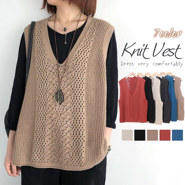 \2点ご購入で200円OFF/ニットベスト レディース チョッキ トップス Vネック ベスト 薄手 ゆったり セーター 無地 重ね着 秋コーデ ノースリーブ お