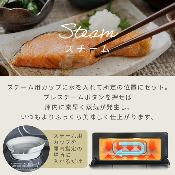| 商品説明 | ●電源:AC100V(50/60Hz) ●電源コード長さ:約1.4m ●庫内容量:15L ●庫内有効寸法:幅35.3×奥行29.3×高さ13.5cm 【電子レンジ】 ●消費電力:1300W ●高周波出力:1000W/600W/500W/200W相当/100W相当 ●発振周波数:2450MHz ●電子レンジ機能の年間消費電力量:59.2kWh/年 【オーブン】 ●消費電力:1370W ●温度調節範囲:40℃、100〜200℃ ●オーブン機能の年間消費電力量:8.8kWh/年 【グリル】 ●消費電力:730W ●年間待機時消費電力量:0.0kWh/年 ●年間消費電力量:69.6kWh/年 ●付属品:スチーム小皿×1、角皿×1、角皿スタンド×2、取扱説明書兼保証書×1 ●メーカー保証:1年間 |