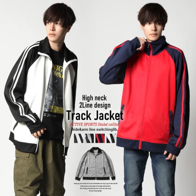 トラックジャケット メンズ ジャージ 長袖ジャージ メンズジャージ 袖ライン 袖テープ 2ライン おしゃれ かっこいい アメカジ ストリート スポーツMIX