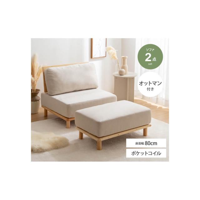 1人掛けソファー + オットマン 幅80cm ソファ ソファー ローソファ 1人掛けソファ オットマン セット