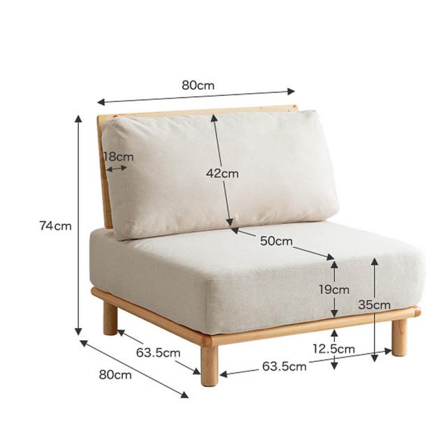 ■サイズソファ : 幅 80cmx奥行 80cmx高さ 74cmx座面高 35cm