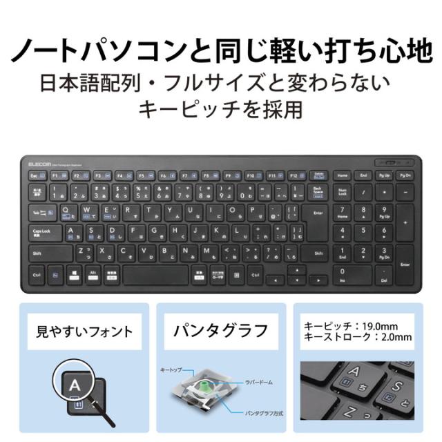 エレコム ワイヤレス フル キーボード 軽量×超薄型 Bluetooth ブラック┃TK-FBP101BK