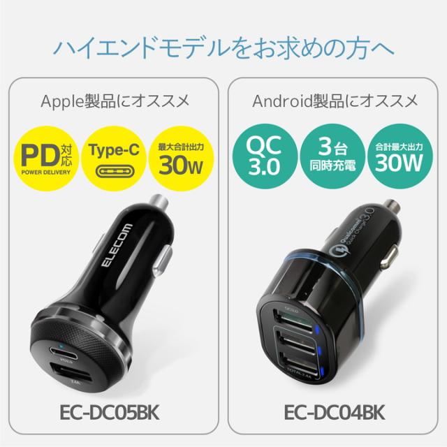 エレコム シガーチャージャー 車載 充電器 (4.8A・2ポート) USB-A 2ポート(自動識別) 4.8A ブラック┃EC-DC03BK