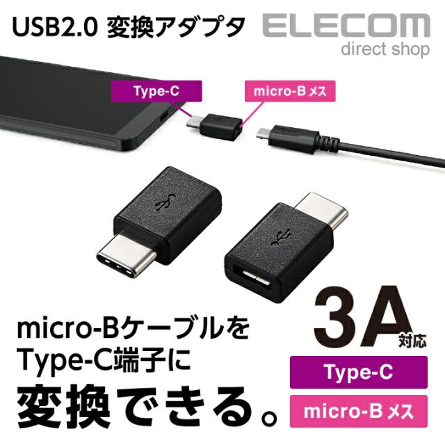 エレコム USB Type-C変換アダプタ Type-C‐micro-B USB2.0 ブラック┃MPA-MBFCMADNBK