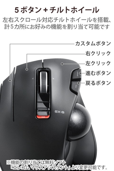 エレコム トラックボールマウス 無線 6ボタン 親指 チルト機能 左手専用 高性能 ブラック┃M-XT4DRBK