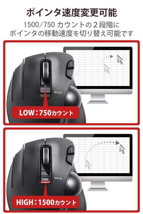 直径2.5mmの大型人工ルビーを支持球に採用。確かな基本性能とかつてない新機能を搭載し、進化したポインタ追従性を実現する左手・親指操作タイプのワイヤレストラックボール。