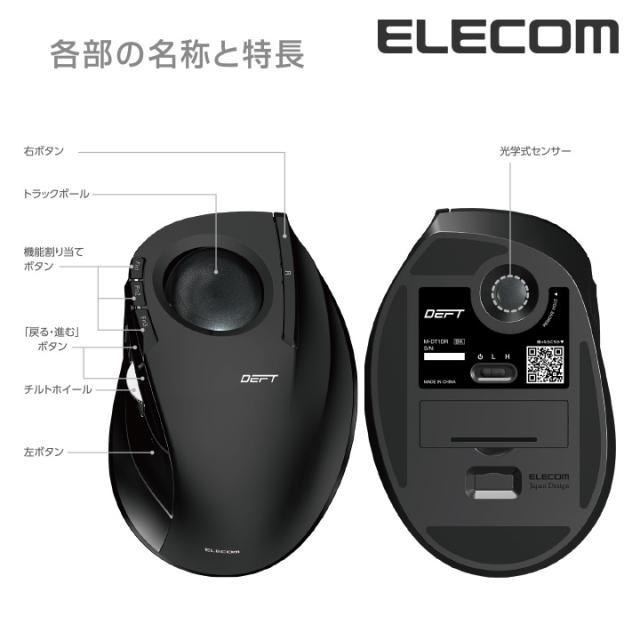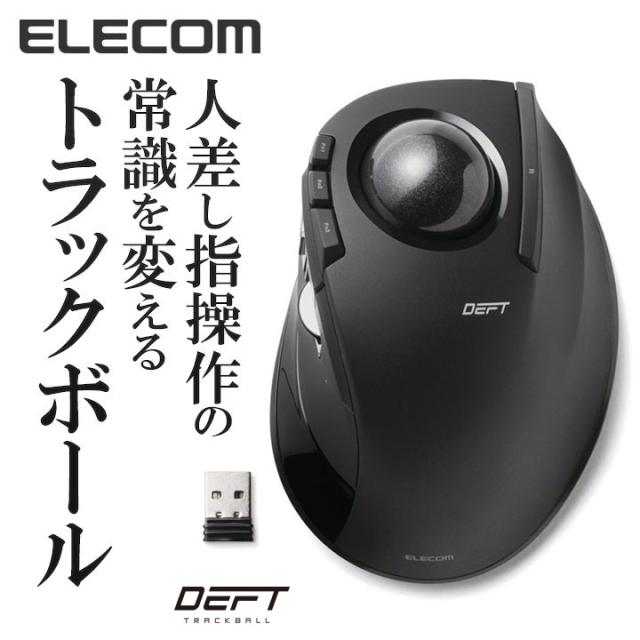 ▲クーポン対象商品(4/1〜4/30)▲ エレコム 無線マウス トラックボール DEFT 圧倒的な操作性能 無線 8ボタン 人差し指操作タイプ Lサイズ ブラック┃M-DT1DRBK