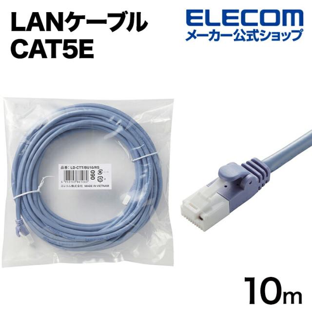 エレコム CAT5E準拠 LANケーブル EU RoHS指令準拠 CAT5E 対応 爪折れ防止 CAT5E準拠 LANケーブル 10m ツメ折れ防止CAT5E準拠 LANケーブル(Cat5E) 簡易パッケージ仕様(ブルー) ┃LD-CTT/BU10/RS