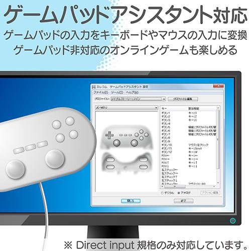 Wiiコントローラがパソコンで使える!1台のWiiコントローラを接続するだけでパソコンで使用できるゲームパッドコンバータ。![]() ■Wiiコントローラがパソコンで使えるようになるゲームパッドコンバータです。 ■Wiiのクラシックコントローラ、クラシックコントローラPROに対応しています。 ■Wiiコントローラ1台を接続可能です。 ■ドライバのインストールなどが不要で、コンバータにコントローラを接続し、パソコンに接続するだけですぐに使用可能です。 ■1秒間あたり最大60回の入力が可能な高レスポンスモデルで、ボタン操作を取りこぼすことなく快適にプレイできます。 ■HOMEボタンを押しながら各ボタンを押すことで、連射モードに設定可能です。 ■無料でダウンロードできる「エレコム ゲームパッドアシスタント」を使って、ゲームパッドの入力をキーボードのキーやマウスの入力に変換できるので、ゲームパッドに対応していないオンラインゲームも楽しめます。 ■※Direct input規格のみ対応しています。 ![]() ■ボタン数:10ボタン対応 ■連射機能:対応(ボタンごとに設定可能) ■軸数:4軸対応 ■対応機種:USBインターフェイスを装備したWindowsパソコン ■対応OS:Windows 10、Windows 8〜8.1、Windows 7(SP1)、Windows Vista(SP2)、Windows XP(SP3) ■インターフェース:USB ■コネクター形状:USB-Aオス ■ケーブル長:1.0m ■サイズ:幅62.0mm×奥行26.0mm× 高さ17.0mm ※ケーブルを除く ■重量:約32g ■電源:USBバスパワー ■電源電圧:5.0V ■最大消費電流:500mA ■付属品:ユーザーズマニュアル×1 ■カラー:ホワイト ■保証期間:6カ月間 ■アナログスティック:2本対応 ■POV(ハットスイッチ):対応 ■その他:対応コントローラー:クラシックコントローラ(RVL-005)、クラシックコントローラ PRO(RVL-005(-02)) |