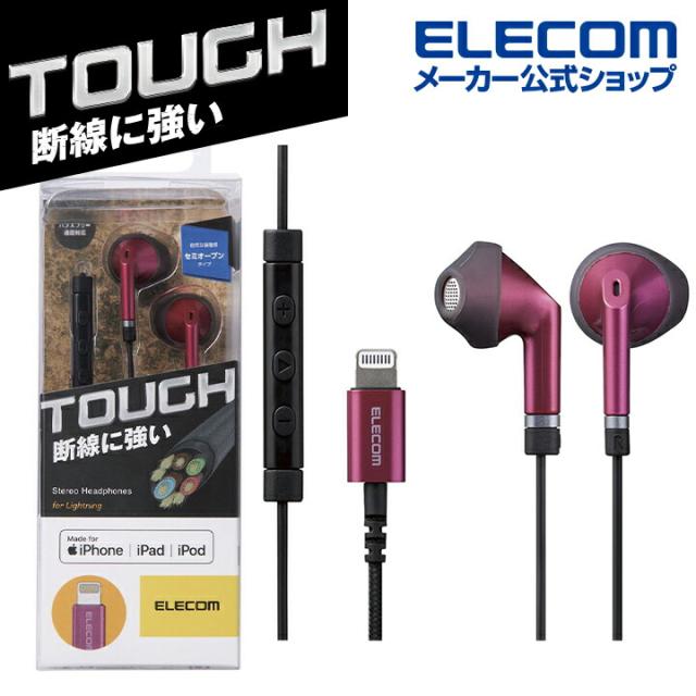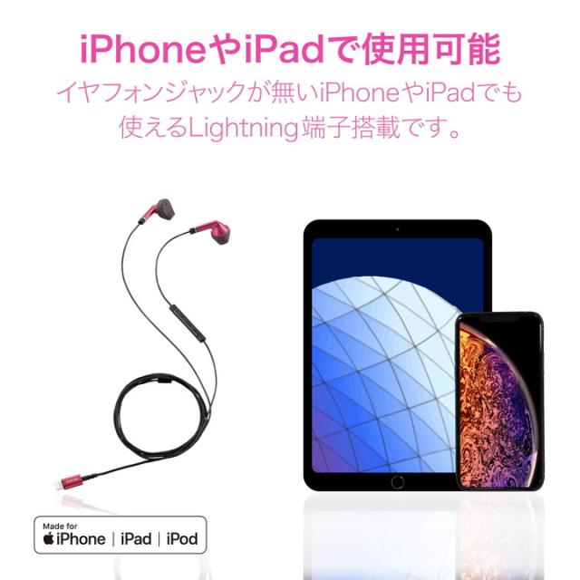 【在庫処分・お買い得!】 エレコム ステレオイヤホン 高耐久 マイク セミオープン型 Lightning 13.6mmドライバー ピンク┃EHP-LFS10IMPN
